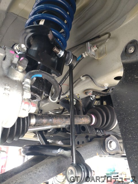 - フロントにスタビライザーを装着することにより、大きなロールを抑えることができ、ステアリングを切った際のレスポンスも大きく向上します。
